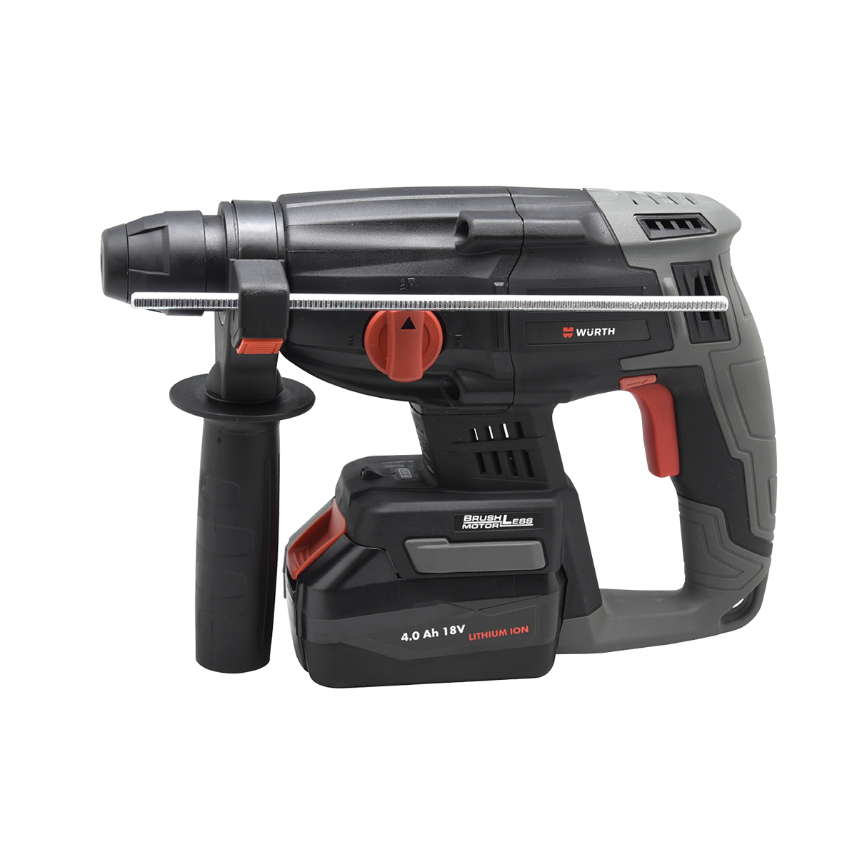 Мощен и удобен акумулаторeн перфоратор подходящ за пробиване в бетон, тухла и камък, а също и за леко къртене. Високоефективен безчетков мотор. По-дълъг живот на батерията и по-висока мощност. Три режима на работа - пробиване, пробиване с удар, къртене. Много добро съотношение тегло/мощност. Лек 3,0 кг. перфоратор с мощност 2,0 J. Вградена LED светлина. Ергономичен дизайн с гумирана ръкохватка.