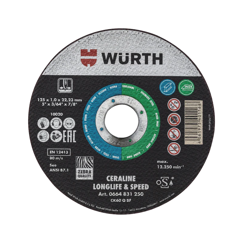 Изработен от високоефективен керамичен абразив с оптимална система за свързване за изключително дълъг експлоатационен живот, максимална производителност на рязане и оптимални свойства на рязане