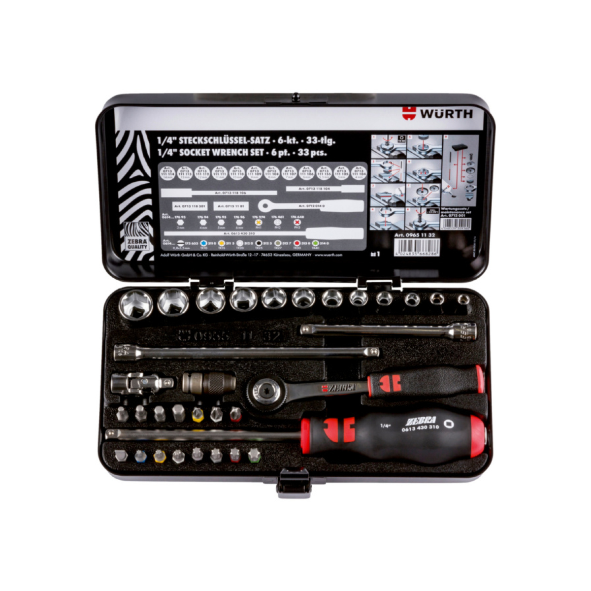 Комплект тресчотка с вложки 1/4", ZEBRA - 33 части.