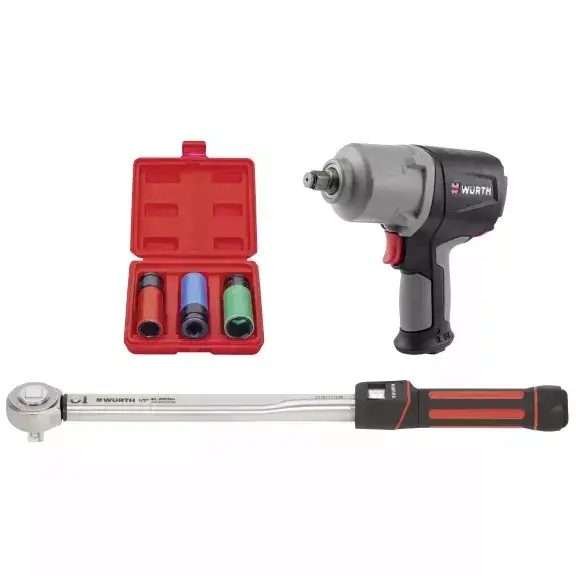 Оборудван с пневматичен ударен гайковерт, динамометричен ключ и комплект ударни вложки от 3 части