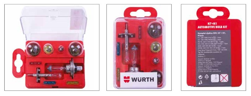 В много европейски страни законодателството изисква водачите да притежават резервен набор от най-необходимите крушки в превозното средство. Благодарение на компактния и практичен комплект, дефектните крушки могат да бъдат подменени на място. По този начин безопасността на трафика е гарантирана.
