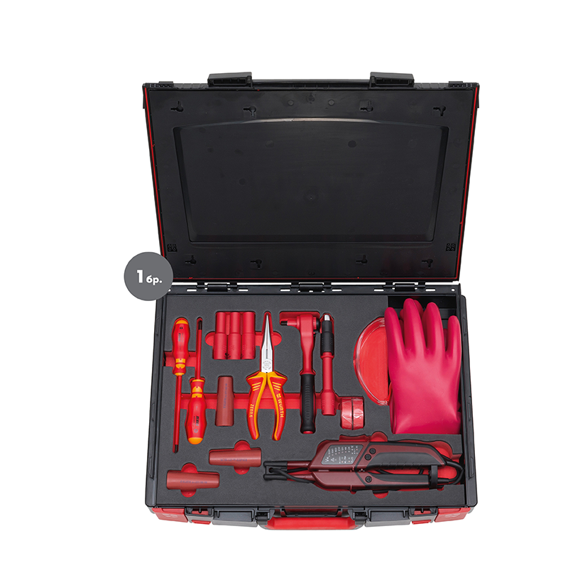 Куфар с VDE инструменти 16ч. предназначен за електрически и хибридни автомобили.