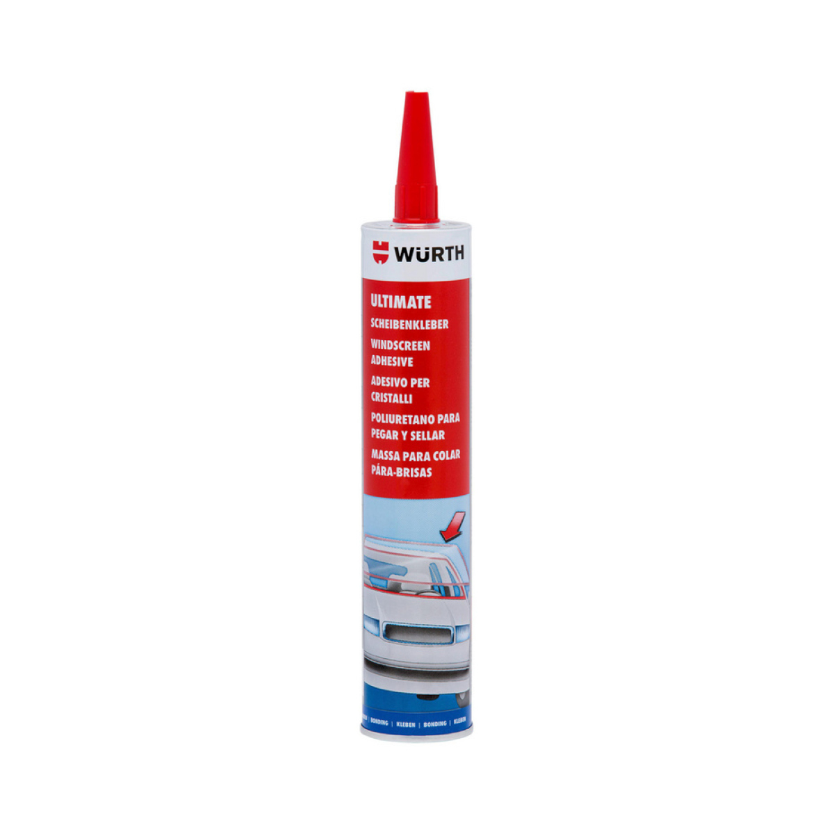 За правилната инсталация е необходимо да използвате този продукт заедно със съответните компоненти на Würth. Следвайте инструкциите за употреба. Преди употреба проверете срока на годност на продукта! По време на процеса не поставяйте автомобила на подемник. При нанасяне, отворете прозорците. Нанесете лепилото с пистолет във вертикално положение, започвайки от долната средна част на предното стъкло. Обърнете внимание на времето за втвърдяване и излизането от сервиза!