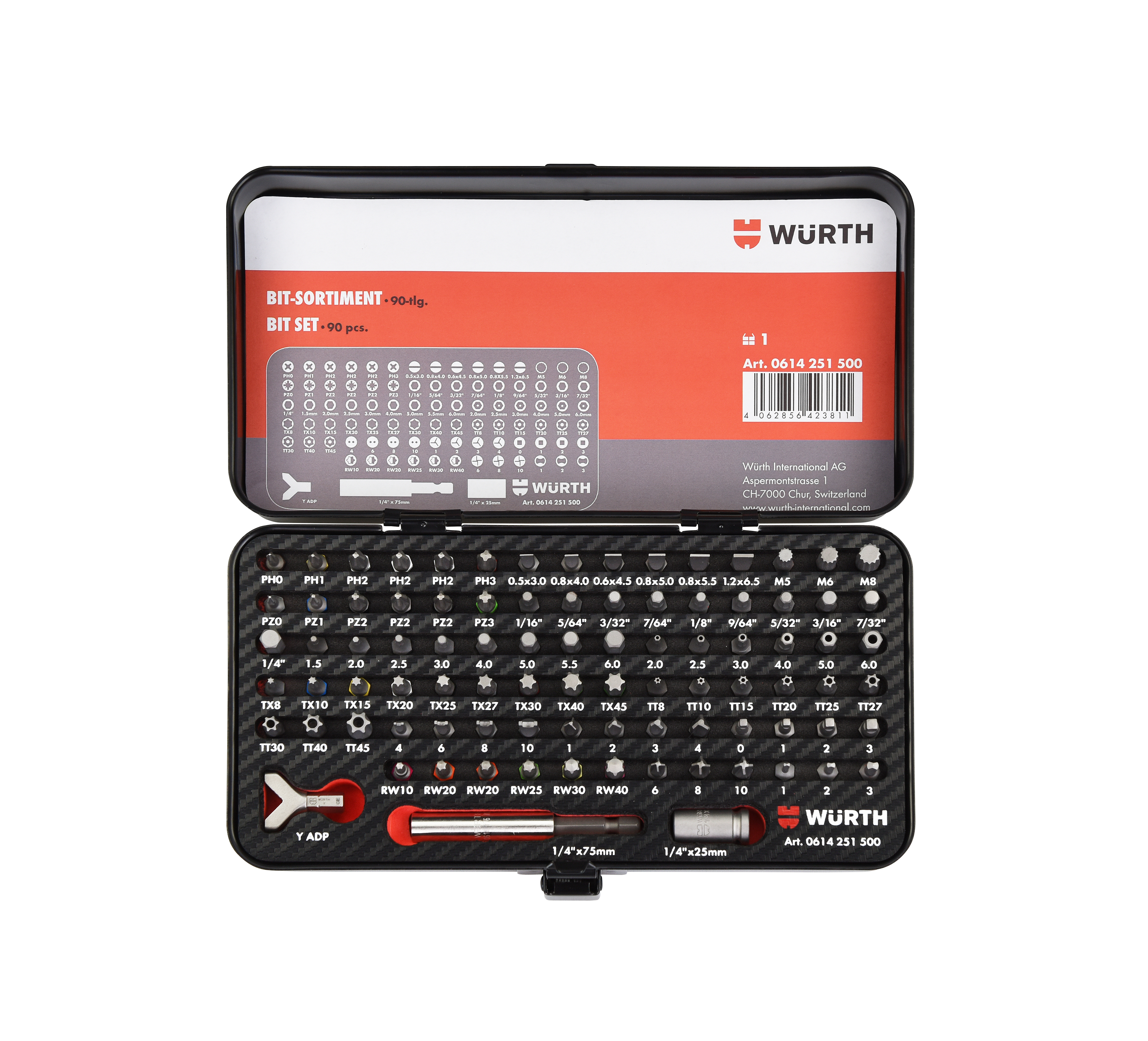 Обширен асортимент от битове 1/4 инча, включва най-често срещаните стандартни битове, плюс адаптери