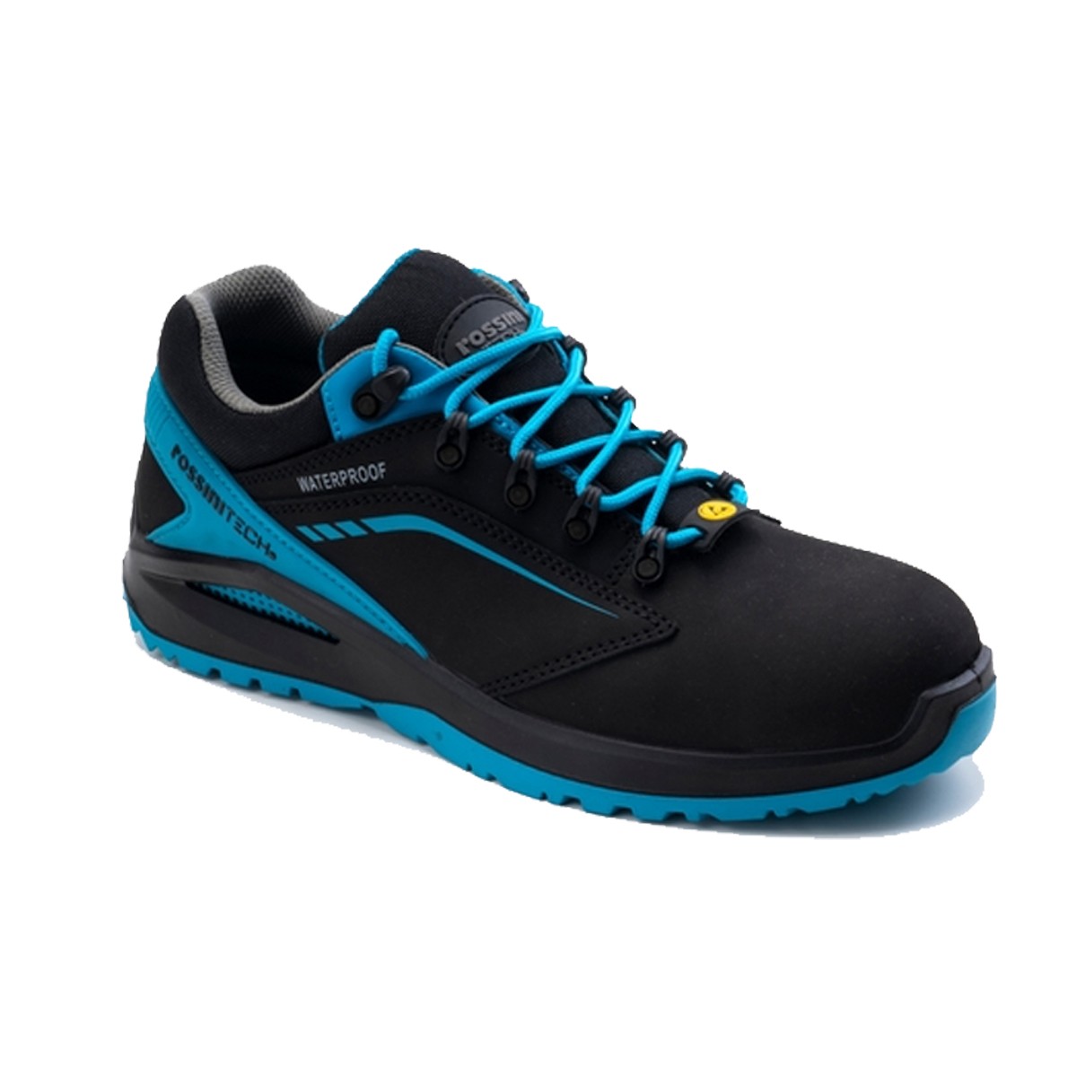 Вътрешна подплата R-DRY в сиво и синьо синьо против миризми, подплатен език, бомбе от фибростъкло, неметална междинна стелка, анатомична стелка, с антишок абсорбиращ гел на петата, подвижна, дишаща и антистатична.R-FRESH система, която насърчава циркулацията на въздуха и поддържа крака сух.Противоплъзгаща се подметка от полиуретан с двойна плътност.