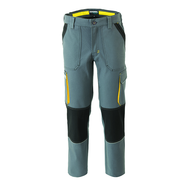 Целогодишен работен панталон с голяма еластичност, два големи предни джоба и многофункционален разширяващ се страничен джоб. Задни джобове с велкро затваряне. Устойчив на износване с констрастна подсилваща материя на коленете, вложки и констрастни ленти.