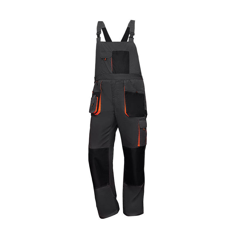 Благодарение на качествения материал, модерен дизайн и елегантна цветова комбинация с много практични джобове, работните полугащеризони STRETCH ще ви осигурят комфорт и защита при работа. Изработен е от висококачествена тъкан с полиестерно подсилване на места, изложени на по-голямо износване - колена и лакти, в сиво с оранжеви детайли.