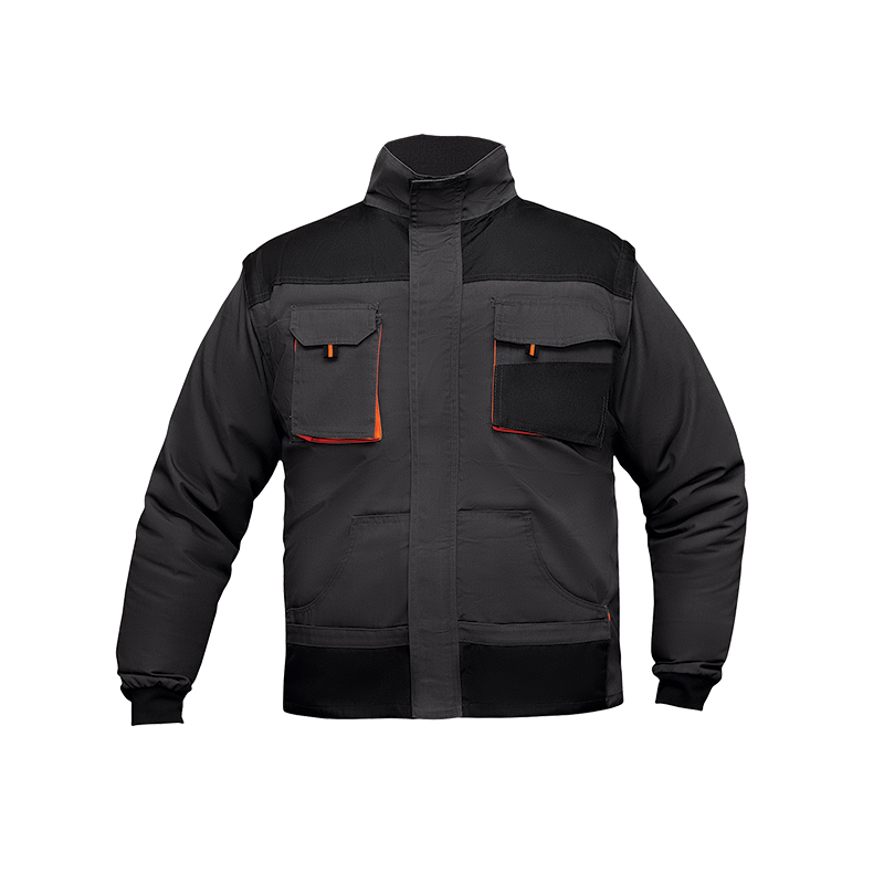 Благодарение на качествения материал, модерен дизайн и елегантна цветова комбинация с много практични джобове, работното яке STRETCH оранж. ще ви осигури комфорт и защита при работа. Изработен е от висококачествена тъкан (65% полиестер и 35% памук, 270 г/м2) с полиестерна подсилване на места, изложени на по-голямо износване - колена и лакти, в сиво с оранжеви детайли. Може да се използва в строителната индустрия, на строителни обекти, в работилници, по време на транспорт, по време на съхранение, но и в свободното време. Голям брой функционални джобове. Място за протектори. Тройни шевове.