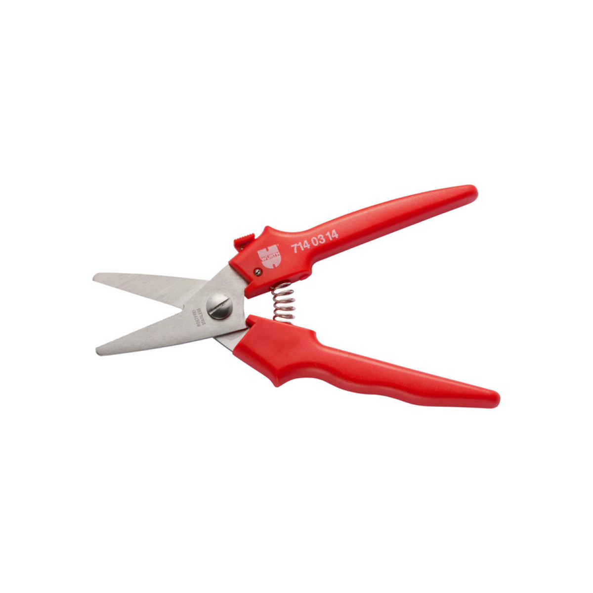 Ръчна ножица за рязане на меки материали, фолиа, хартия, картон и пластмаси.