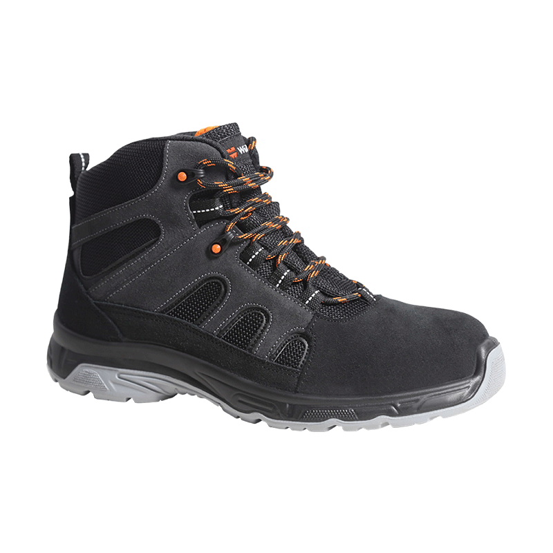 Работни обувки със защита S3. Изработени от висококачествен велур, с композитно бомбе, което ги прави леки и удобни. Подплатени с 3D текстил, който позвoлява на кожата да диша. Двуслойната подметка е полиуретанова, изключително гъвката и маслоустойчива. Анатомична подметка, която поддържа стъпалото в правилна позиция - абсорбира напрежението в петата и дава конрол и удобство през целия работен ден.Размери: 36-48
