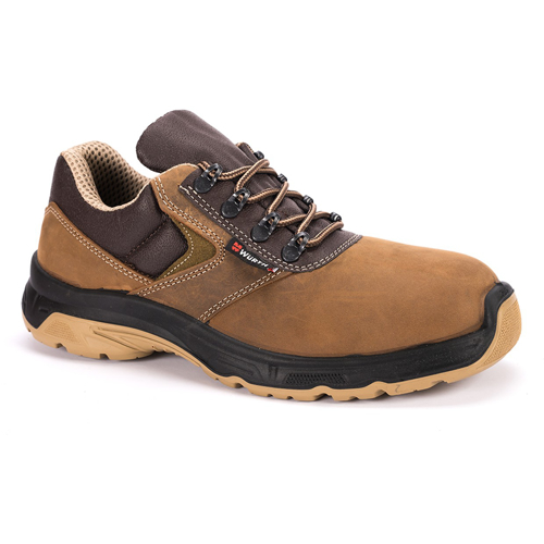 Защитни обувки Mars със степен на защита S3. Изработени от кафява кожа набук със защитно композитно бомбе, което ги прави леки и удобни. Моделът се отличава с двуслойна PU подметка, която е изработена от полиуретан с различна плътност, вътрешният слой е гъвкав, докато външният е направен от по-здрав полиуретан - устойчив е на масла и има отлични противоплъзгащи свойства. Анатомична сменяема стелка. Размери: 37-47